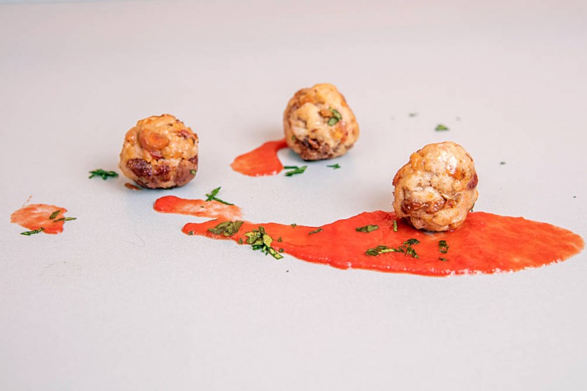4. Incorporar el macerado, mezclar bien, formar las albóndigas con 3 a 4 cm de diámetro y reservar por media hora, refrigeradas.