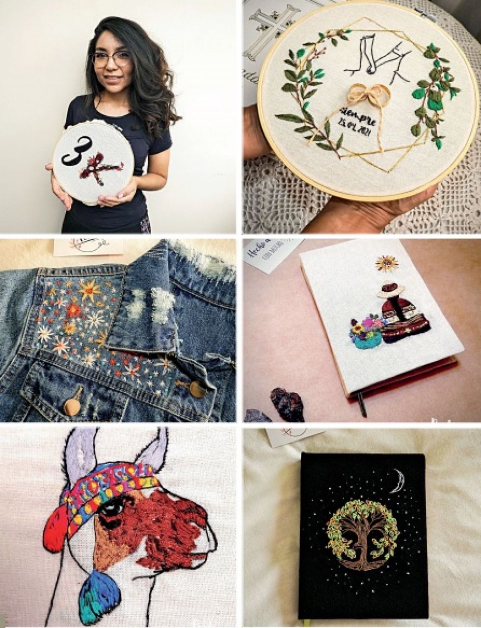 Hace más de tres años estudió Diseño Gráfico y hace personalmente los diseños. Sus bordados se caracteriza por ser modernos, minimalistas, con diseños en líneas y en 3D, también conocidos como bordados en relieve.