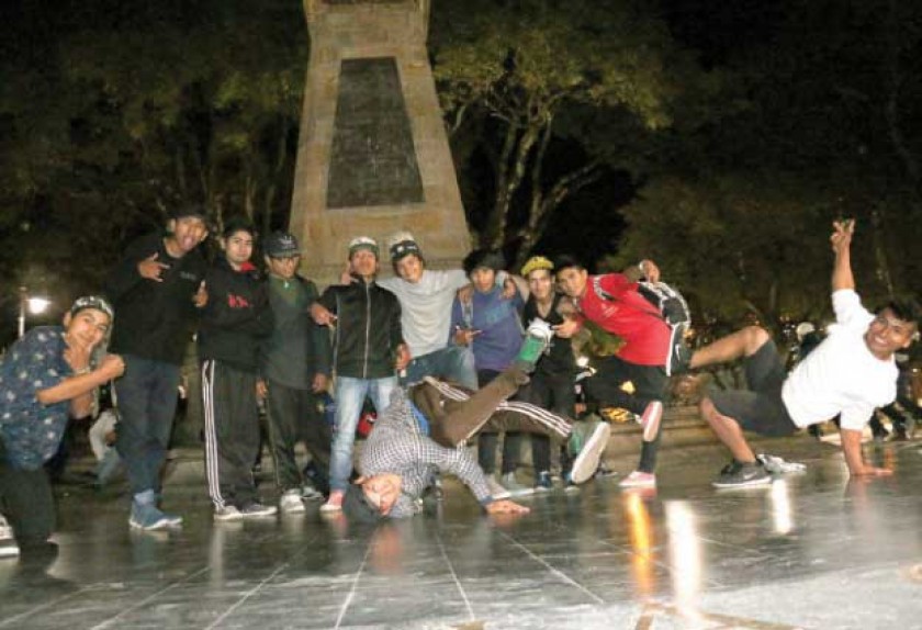 REUNIDOS. El Crew de la Plaza 25 de mayo es un espacio donde distintos jóvenes se reúnen para practicar Breakdance. Un grupo de jóvenes reunidos forman un semicírculo alrededor de algo que concentra toda su atención, un parlante a todo volumen y el movimiento de un cuerpo lleno de vida que no se detiene en ningún momento y danza al unísono de los pulsos musicales del hip hop que puebla todo el centro de la plaza 25 de Mayo. La gente se detiene a escuchar y a ver este espectáculo de la cultura urbana que poco a poco emerge sobre el lado alternativo de la Culta Charcas.