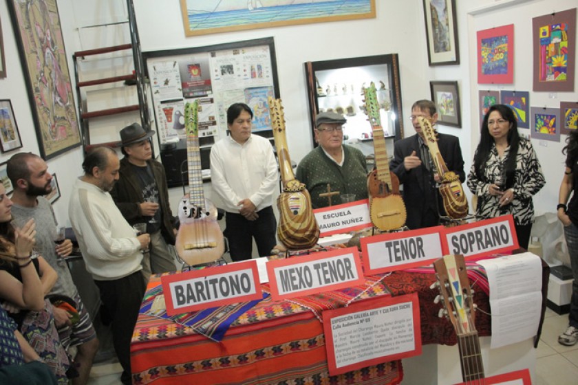 El maestro constructor Marcio Lambertín inauguró anoche su exposición de charango, en la Galería Arte y Cultura Sucre, a propósito del Día Nacional del Charango y el natalicio del intérprete y constructor del charango Mauro Núñez.