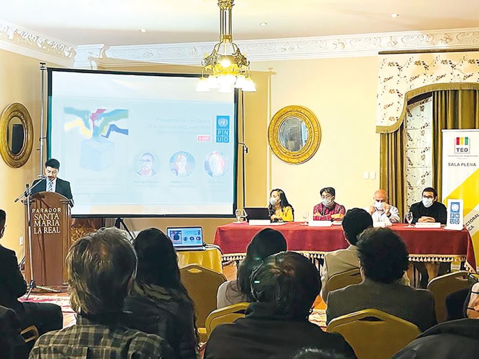 Junto a otras agencias internacionales, el PNUD apoyó el proceso electoral de 2020 en Bolivia. Anoche, el coordinador del Programa de Gestión Institucional del organismo, Fernando Aramayo, lo destacó, pero apuntó que no fue suficiente. Anunció que trabajarán en restablecer espacios de diálogo político, social y ciudadano; un primer paso en Sucre fue la presentación del libro, tal como ha sucedido en otras ciudades. Hay más planes con la capital.