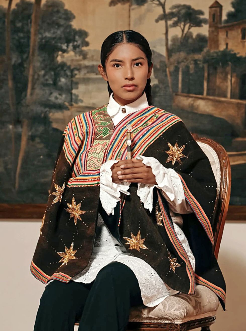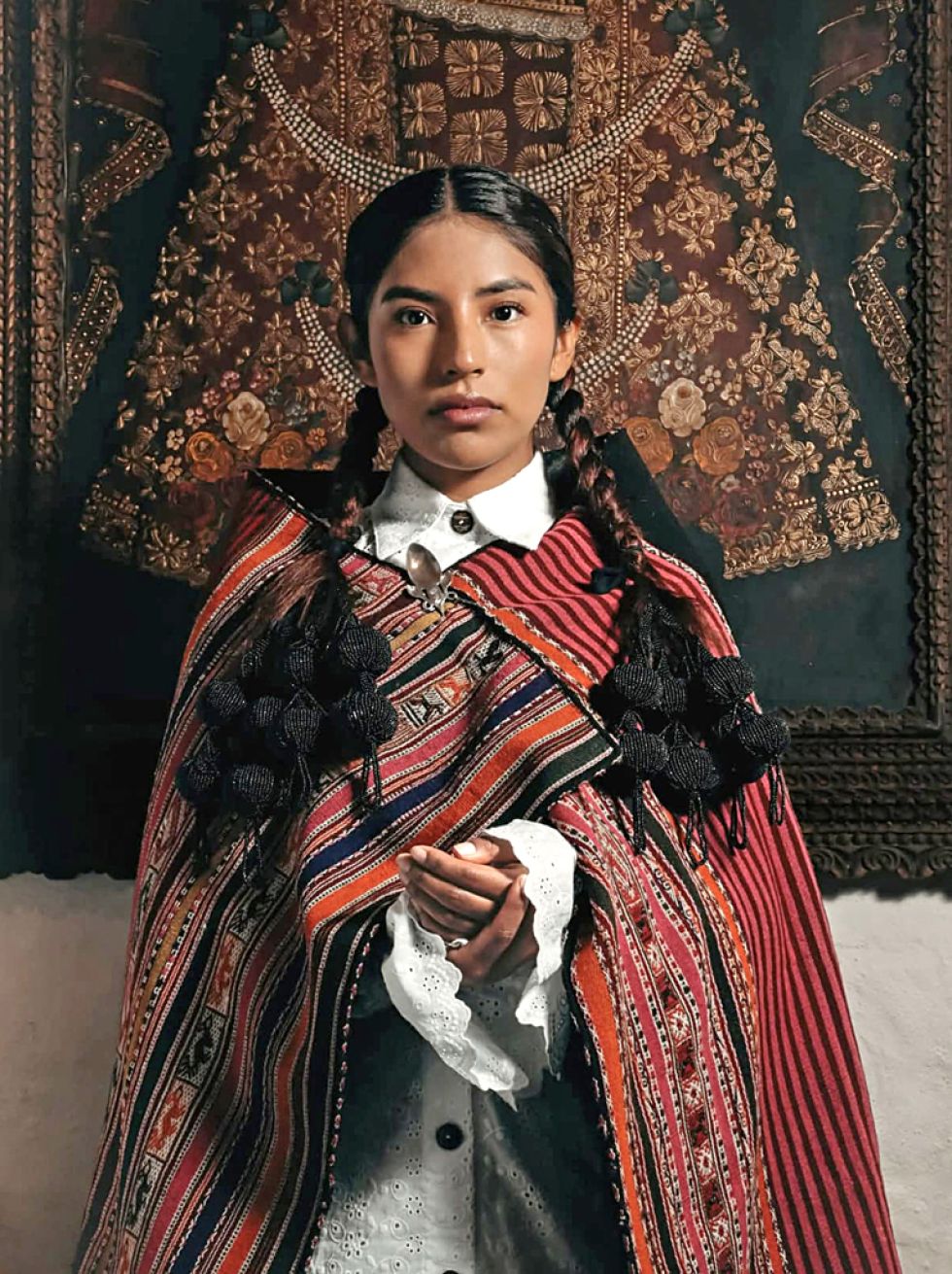 Allí se la ve posando con aguayos andinos tejidos a mano, “en un homenaje al trenzado y los oficios tradicionales que conectan pasado y presente, así como a Sacaca en un referente cultural de la Bolivia actual”. La cuidada producción une arte ancestral y moda contemporánea.