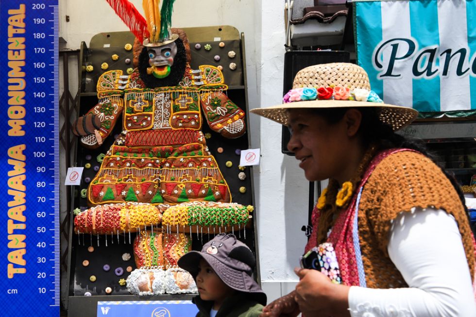 Un elemento central en esta festividad en Bolivia son las 't'antawawas', los panes antropomórficos que representan a los difuntos y que llevan pequeñas máscaras de yeso con rostros pintados de hombres, mujeres y niños.