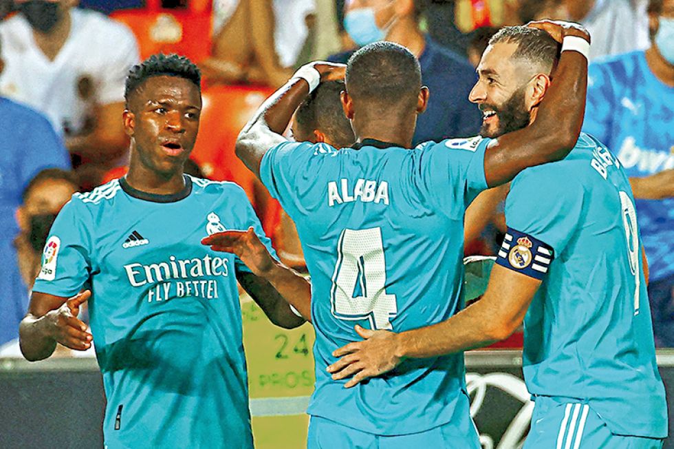 El Real Madrid logró una victoria in extremis ante el Valencia (2-1) con dos goles en tres minutos de Vinicius y Karim Benzema (86 y 88), ayer en la quinta jornada, para mantener el primer puesto de la Liga.