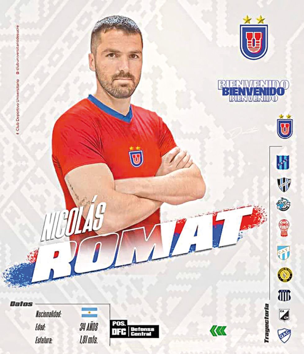 Universitario sumó ayer su segundo refuerzo para el Torneo Clausura de la División Profesional. El defensor argentino Nicolás Romat fue anunciado como nuevo fichaje.