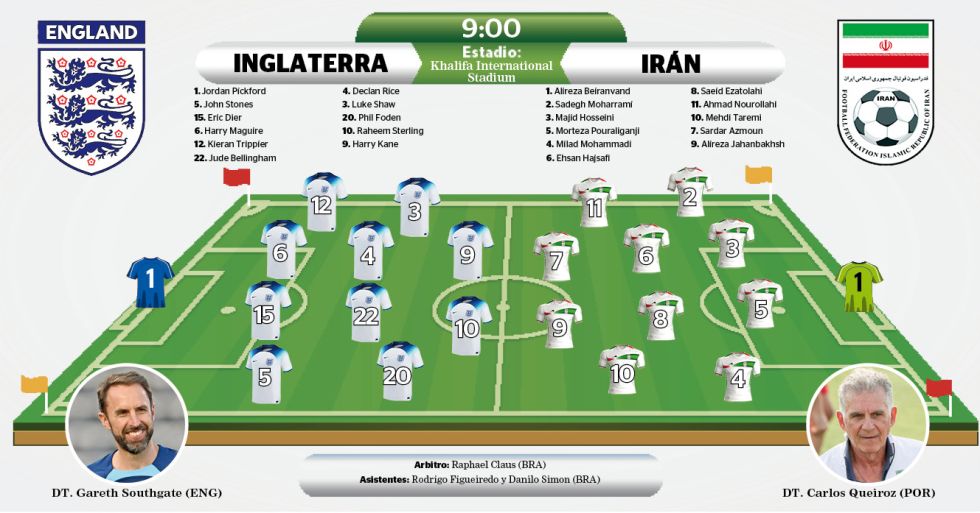 Encuadrada en el Grupo B, Inglaterra está obligada a sumar los tres puntos ante Irán si quiere sellar la clasificación por anticipado ante Estados Unidos y evitar así un duelo de alta tensión en el cierre ante Gales.