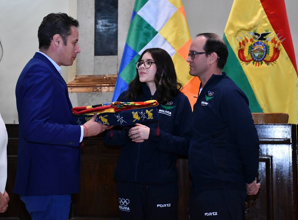 En tanto, Lara entregó el distintivo nacional y se comprometió a cambiar las políticas de fomento deportivo en el nuevo gobierno de Bolivia.