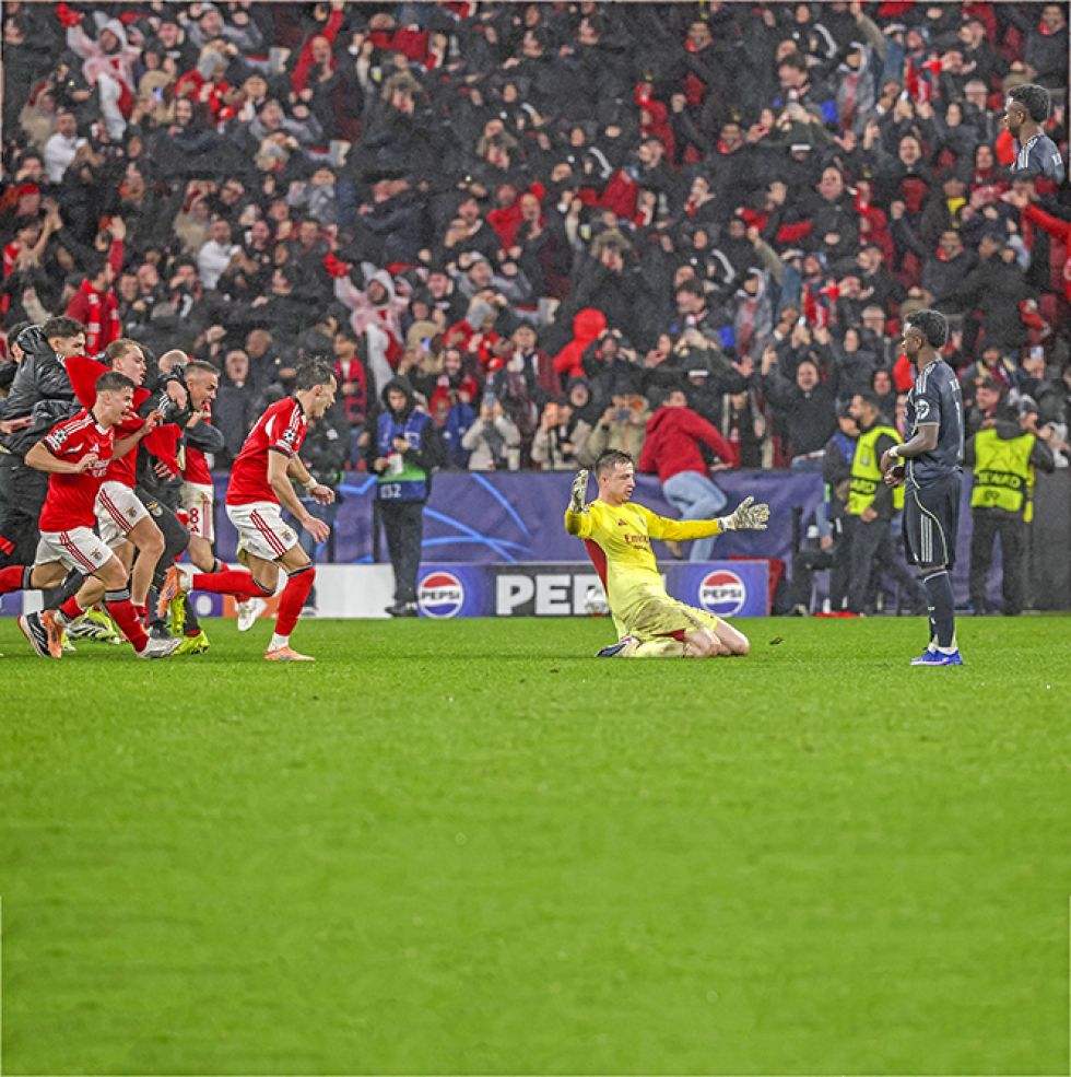 Real Madrid –que necesitaba del empate para clasificar a los octavos de final– dio muestras de vida con el descuento de Mbappé (57’); sin embargo, el Benfica –al que solo le servía ganar por dos goles de diferencia– nunca tiró la toalla y logró un gol histórico a los 95’ por intermedio de su arquero Trubin, quien fue a cabecear un tiro libre. Con el gol se acabó el partido y se desató el festejo en las graderías del estadio Da Luz de Lisboa.