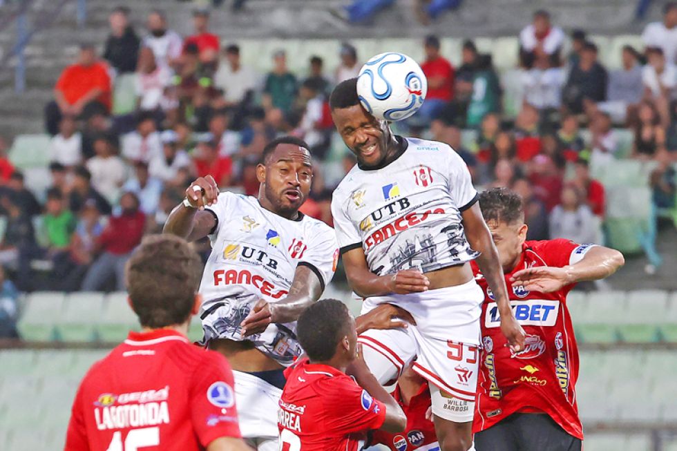 El albirrojo respondió a los 36’ cuando el colombiano Rodrigo Rivas recibió un pase filtrado, le ganó a su marca, pero no pudo en el mano a mano con el golero Frankarlos Benítez, quien le achicó el ángulo y despejó el remate con el cuerpo.