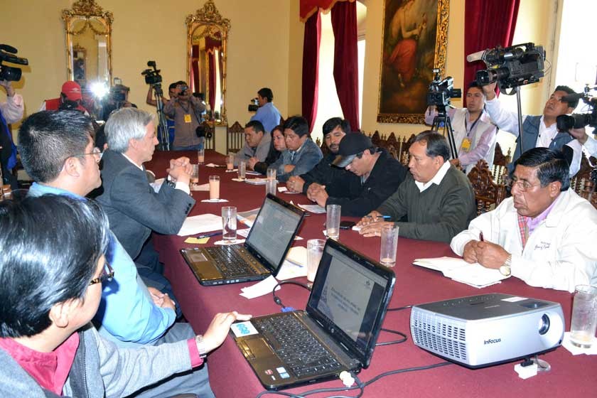 Al finalizar la cita en Palacio de Gobierno, el máximo dirigente de la COB, Juan Carlos Trujillo, señaló que García Linera transmitió la demanda de la Confederación Nacional de Empresarios Privados para la ampliación del pago del doble aguinaldo hasta abril próximo.