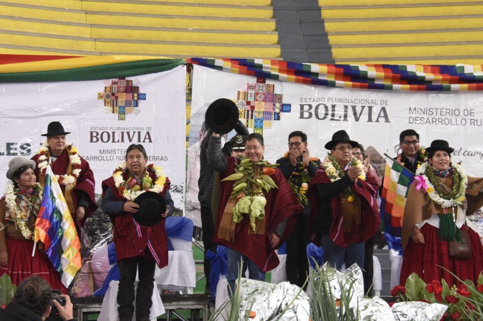 “Este programa, que son 300 millones de dólares, es para fortalecer a los productores, es para fortalecer a nuestras hermanas y hermanos que producen alimentos para las ciudades”, resaltó el vicepresidente Choquehuanca.