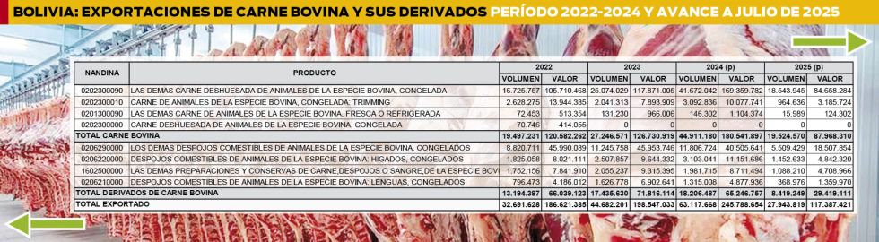 Por datos oficiales, se sabe que las exportaciones de carne crecieron constantemente desde 2016 hasta 2025, cuando el gobierno de Luis Arce decidió prohibirlas con la intención de regularizar el abastecimiento y bajar los precios en el mercado nacional.