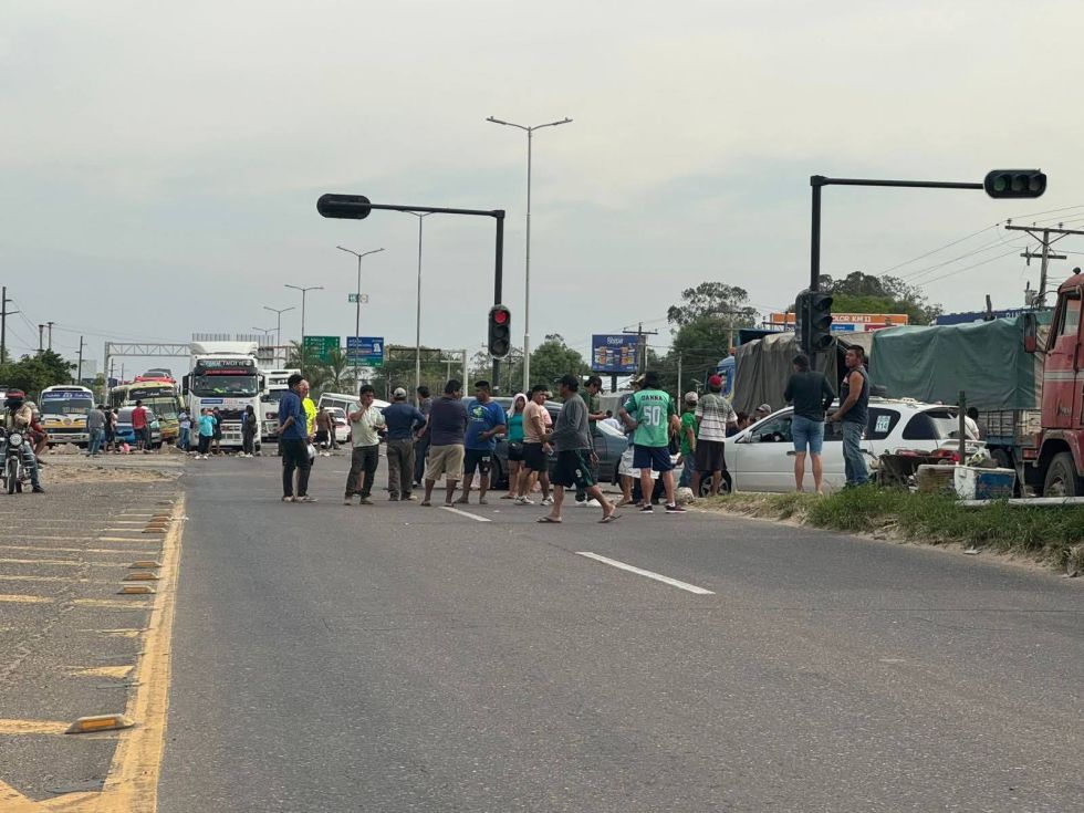 Ante la falta de combustible, choferes y vecinos tomaron la vía que conecta Warnes con Santa Cruz de la Sierra como protesta.