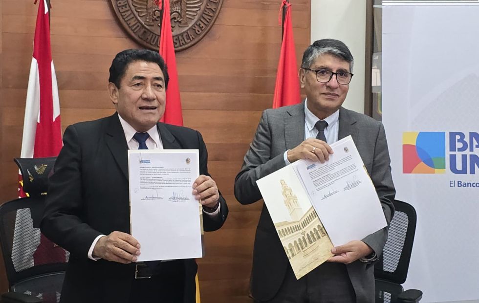 Posteriormente, este miércoles 15 de octubre, en la ciudad de Sucre, se llevó a cabo la firma del segundo convenio con la Universidad Mayor Real y Pontificia de San Francisco Xavier de Chuquisaca, representada por su rector Walter Isidro Arízaga Cervantes, y el gerente regional de Chuquisaca, Roberto Durán Flores, en representación de la entidad financiera.