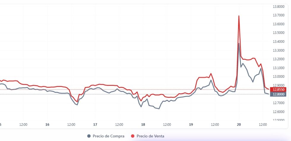 La mañana de este lunes, la cotización cayó de los Bs 13 y oscila entre Bs 12,80 y Bs 12,85, en un rango similar al que se registró antes de la jornada electoral.