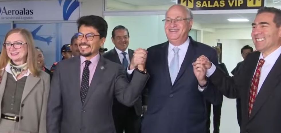 El presidente del BID, Ilan Goldfajn (2d), fue recibido por autoridades en El Alto. Foto: Captura de video El presidente del Banco Interamericano de Desarrollo (BID), Ilan Goldfajn, aterrizó la mañana de este martes en el aeropuerto de El Alto para cumplir una agenda en el país con reuniones con el presidente Rodrigo Paz, ministros, empresarios y el Banco Central de Bolivia.