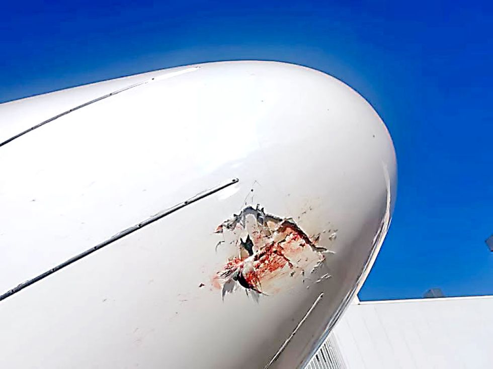 DAÑO. Así quedó parte de una de las aeronaves de Boliviana de Aviación tras el impacto con aves. Foto: RRSS Boliviana de Aviación (BoA) informó que el sábado se presentaron situaciones imprevistas que afectaron de manera temporal la programación de varios vuelos, principalmente en el aeropuerto de Viru Viru, en Santa Cruz.