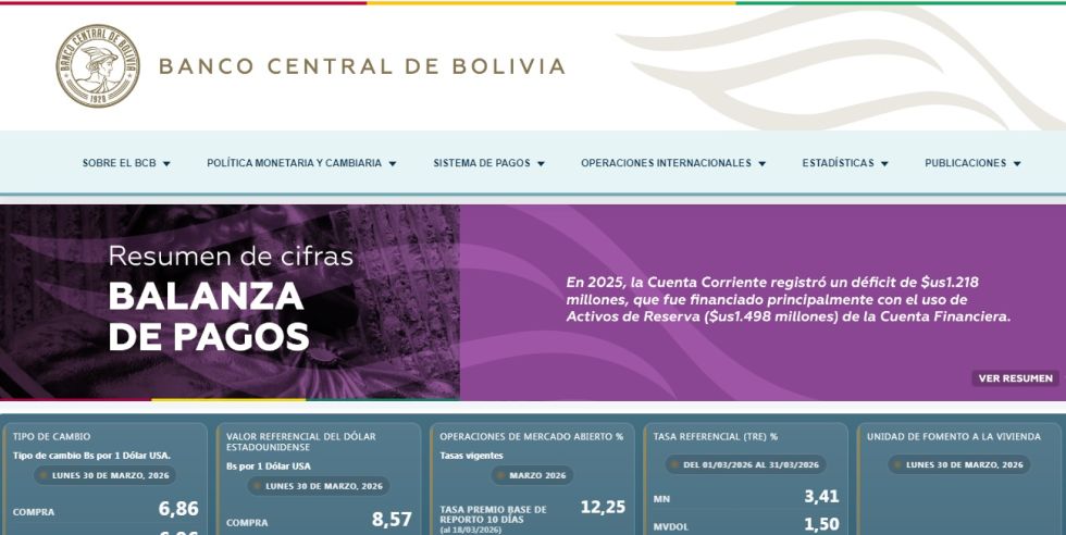El Banco Central de Bolivia (BCB) actualizó su página web (www.bcb.gob.bo), según su propia explicación, con un importante cambio de imagen y un reordenamiento didáctico de la información que permitirá acceder a los usuarios fácilmente a sus contenidos.