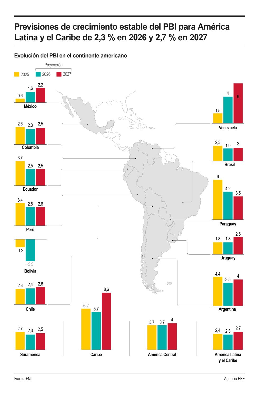 Únicamente Bolivia aparece con crecimiento negativo en sus proyecciones