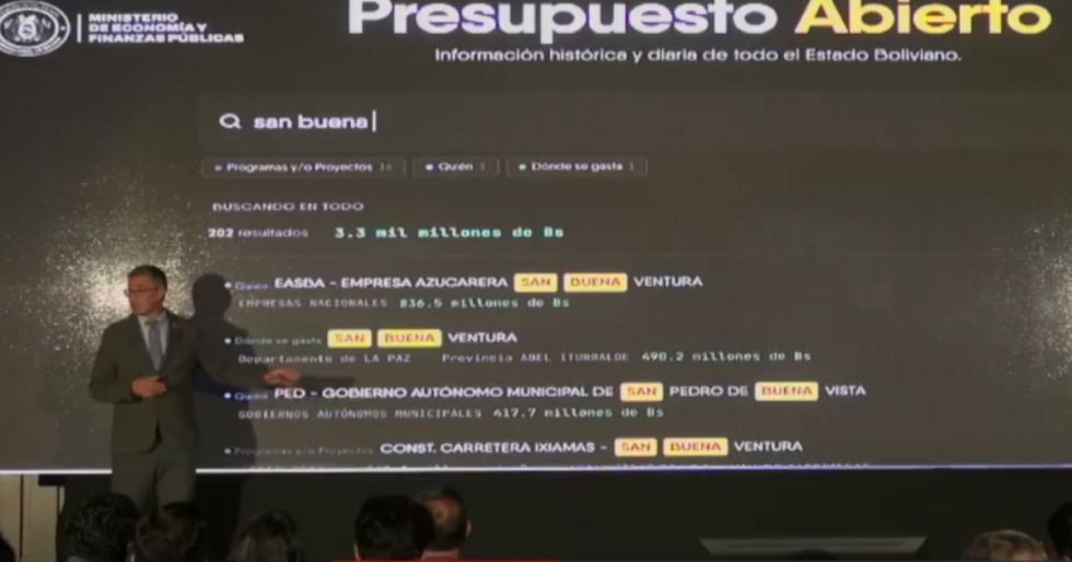Según explicó la autoridad, el sistema permitirá a cualquier ciudadano boliviano consultar datos de más de 735 mil proyectos y programas ejecutados entre las gestiones 2016 y 2025, así como realizar seguimiento a los gastos generados por autoridades y exautoridades.