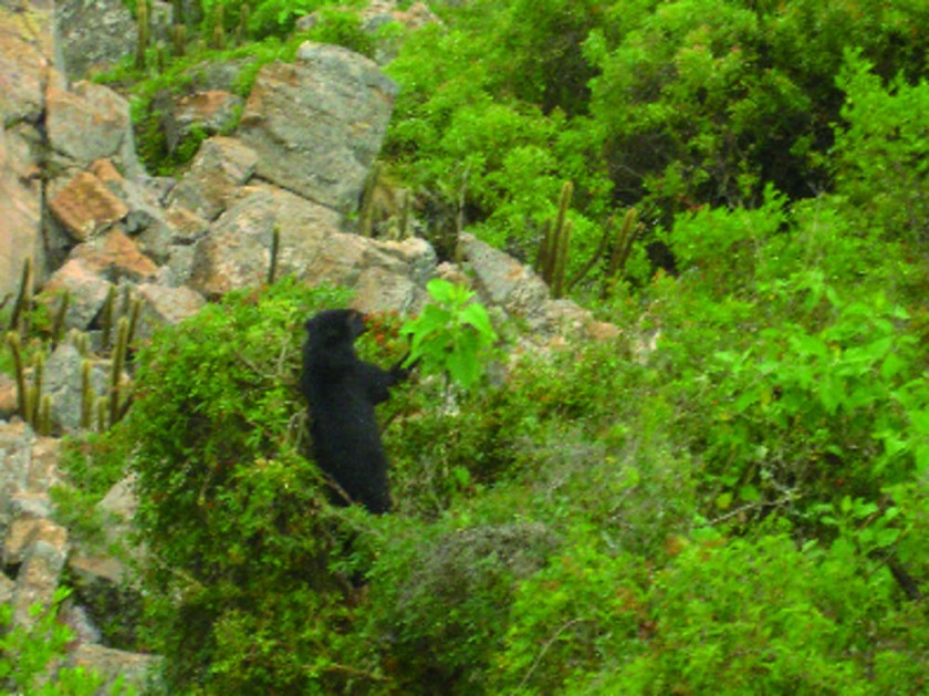 Yo me he salido a un lugar visible, para poder hacer seguimiento al oso, y seguía observándolo. Se ha llegado a una roca grande, a una cuevita; ahí se ha descansado unas dos horas… En ese lugar yo seguía, porque tenía siempre la expectativa de verlo, de hacer seguimiento, de sacarle foto… gracias a Dios, he logrado sacar. El oso vino y dijo: ‘sacame foto’”.