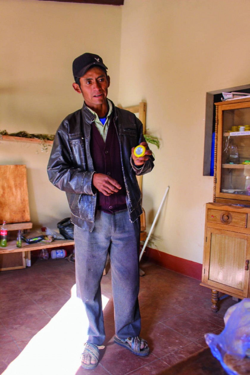 “Anteriormente trabajábamos aquí con la Fundación ACLO, teníamos un grupo entre varones y mujeres y hacíamos pomadas; de ahí he aprendido. Ese grupo ya no funciona. ACLO ha contratado un naturista y él nos ha capacitado. Eso, en 1998-1999. Casi ya me estuve olvidando, pero en el pasado año, a través de PRODECO, yo mismo me preocupé de hacer más medicamentos. Y lo hemos logrado, con más aplicaciones”, dice Serrano.