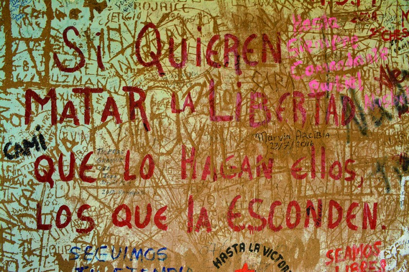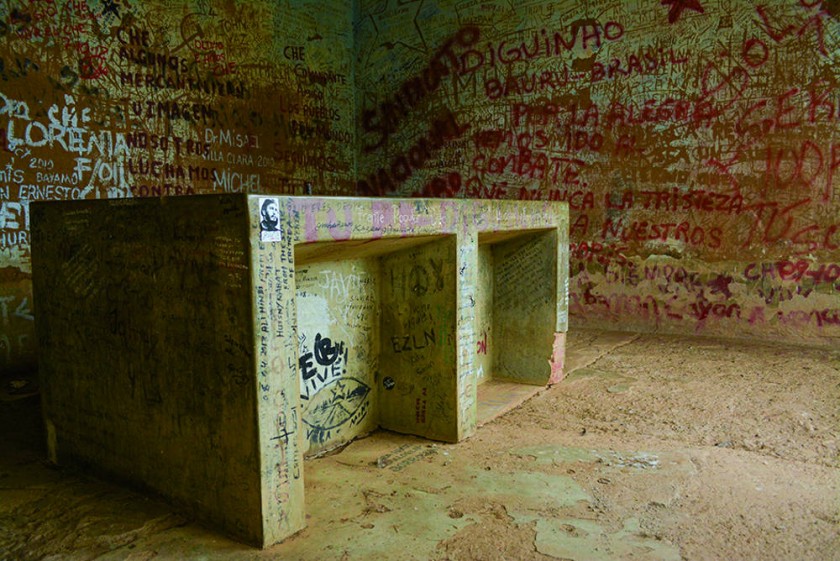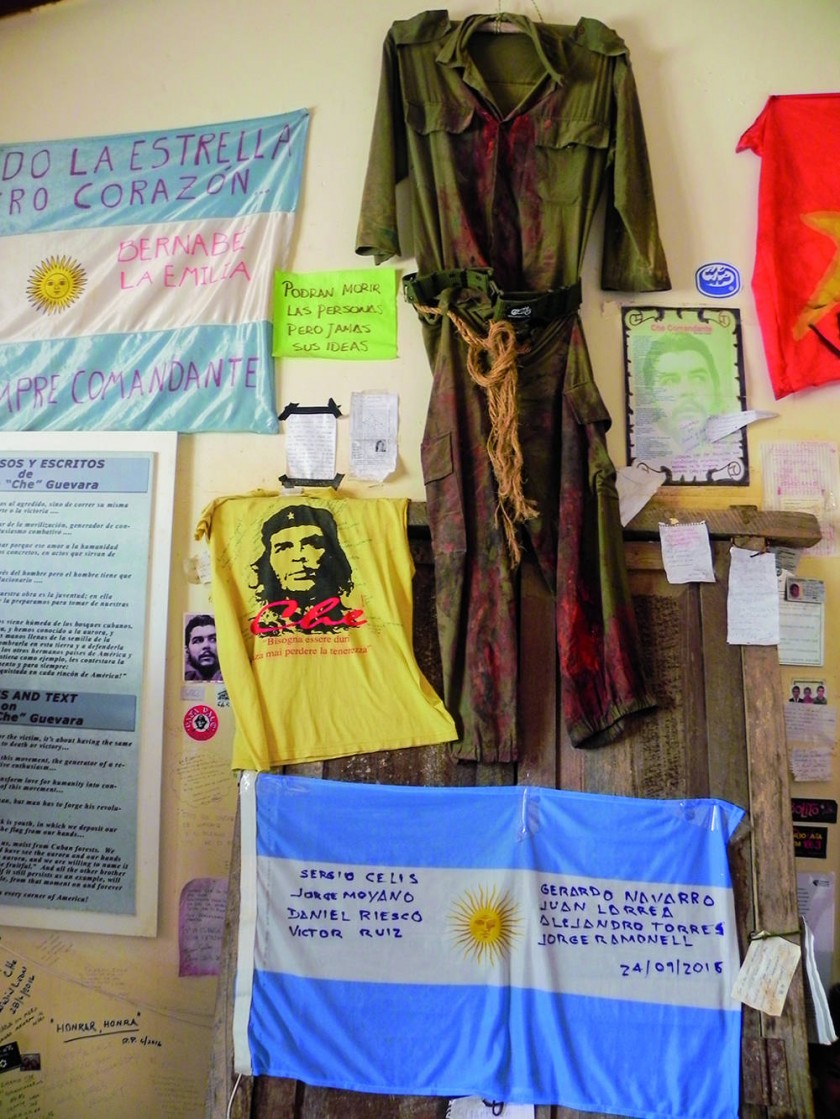 Preguntando a la gente (mucho más de lo que uno podría esperar), finalmente damos con el lugar. Un cobertizo con la lavandería techada, todo bañado por un mar de escritos y mensajes de culto a Guevara. Por la cantidad de grafitis que abarrotan los muros uno puede darse cuenta de la cantidad de personas que llegan hasta ahí para dejar constancia de su presencia y homenaje al Che.