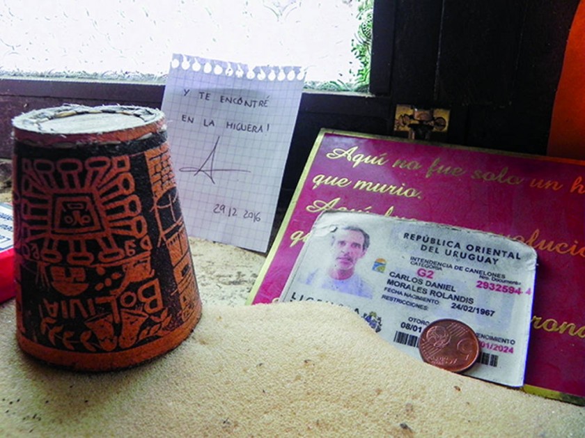 Abre las puertas y ante nuestros ojos se ofrece una imagen que podría ser barroca, si de arte se tratara: un mosaico colorido de imágenes y objetos. Será porque desde su apertura, hace 28 años, el lugar recibió miles de visitantes que dejaron recuerdos de los más disimiles: fotos, cédulas de identidad, cigarrillos, libros, prendas de vestir y manuscritos con apasionados versos, entre otros elementos que los mismos turistas se encargan de acomodar allí donde encuentran un espacio libre, configurando de ese modo el abigarrado→ →museo de la guerrilla del Che en Bolivia. Uno de los objetos más importantes es la silla donde lo tuvieron maniatado y donde, según afirman los que replican la historia, mataron al Che.