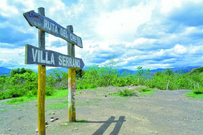 Ascendemos a las serranías vallegrandinas por un camino duro y serpenteante; tras los primeros kilómetros, letreros de madera confirman que transitamos por la Ruta del Che: desvíos se abren a la derecha y la izquierda del camino principal,→ →senderos por los que seguramente el grupo de guerrilleros a la cabeza del argentino-cubano transitó en sus correrías por la región.