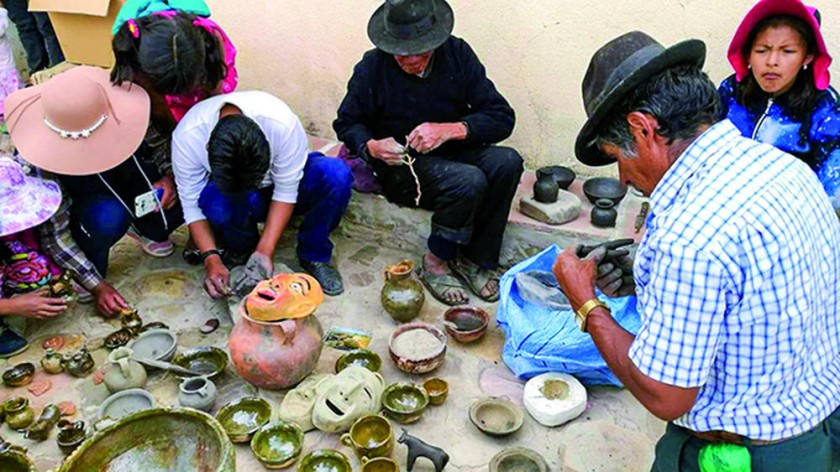 Los presentes disfrutaron de una demostración en vivo de hojalatería y cerámica. Fabricaron platos, ollas, juguetes y máscaras. También observaron todo el proceso de preparación de la verdadera kalapurka, el desgranado del maíz, la molienda, el calentado de las piedras y la cocción de la lawa. •