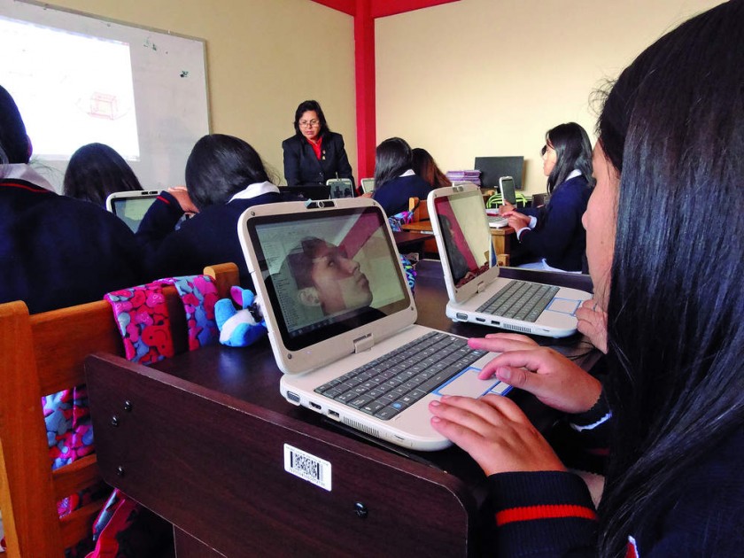 “De los 23 establecimientos que se capacitaron, creo que el (portal) del colegio es el más visitado”, apunta, orgullosa. “Los estudiantes se sienten más motivados (…). Ha mejorado el rendimiento escolar. Antes llegaban a los 60 puntos en promedio, ahora tienen un promedio de entre 70 y 80”.
