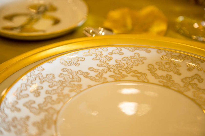 Una apuesta definitiva también por la mezcla en platos y cristalería donde “el color dorado es el hilo conductor”, con piezas de las colecciones Domo Gold, Caillouté, Chasing Stars, Gold Exotic, Anna, y Paseo que complementa con piezas de cristalería de la firma.