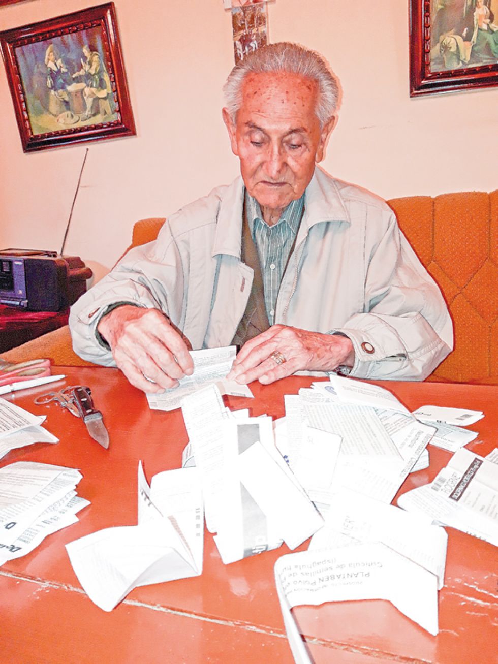 Su rutina diaria, que comenzaba saliendo de casa a las 6:30 para dirigirse al templo, ahora se transformó en un pasatiempo: el reciclaje. Es el desarrollador de una iniciativa de reutilización de las posologías que traen los medicamentos. Consiste en convertir esos papeles de indicaciones en sobres que se usan para entregar los productos en cada una de las sucursales de Farmacias San Agustín.