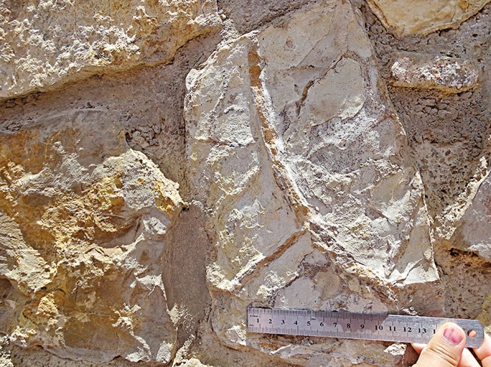Localización: Rocas del muro contiguo a la rampa de acceso actual al Parque Cretácico, cercano al terraceo donde se encuentra un mirador.