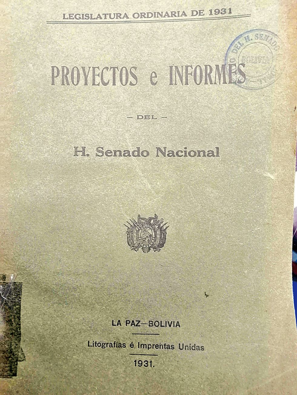 SECRETARIA DEL H. SENADO NACIONAL.- La Paz, 20 de octubre de 1931.- Imprimase.- P. O. del Sr. Presidente.- G. Palenque, Senador Secretario •