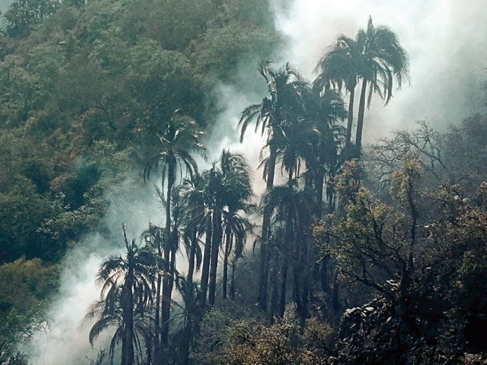 Los incendios ocurridos en el ANMI El Palmar, destruyeron cientos de hectáreas de bosques de la palmera endémica janchicoco (Parajubaea torallyi) y del bosque nativo.