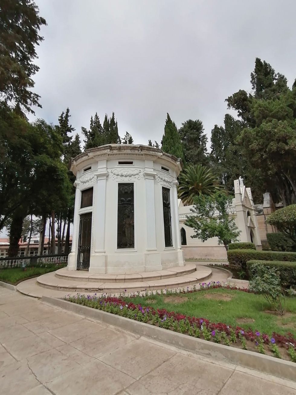 Detrás de ellos están los jardines (en el periodo de cuarentena durante la pandemia, el césped se secó en varios sectores, necesitan más atención) y mausoleos bellamente trabajados con diferentes estilos.