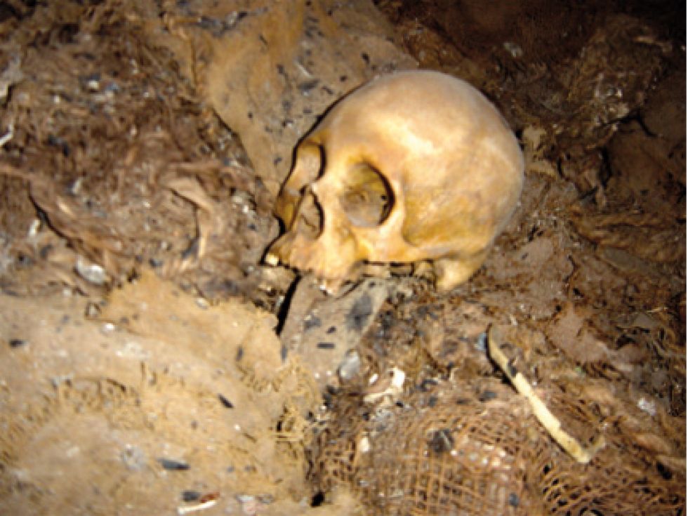 Actualmente, los testimonios conocidos se encuentran dispersos en diferentes niveles de la caverna o apilados —probablemente para hacer espacio en los procesos de saqueo que se han efectuado en el pasado— en una composición impresionante de objetos: restos humanos, fragmentos de cerámica, textiles, objetos de cestería, artefactos de calabazas, flechas, etc. que se presentan juntos y confundidos.