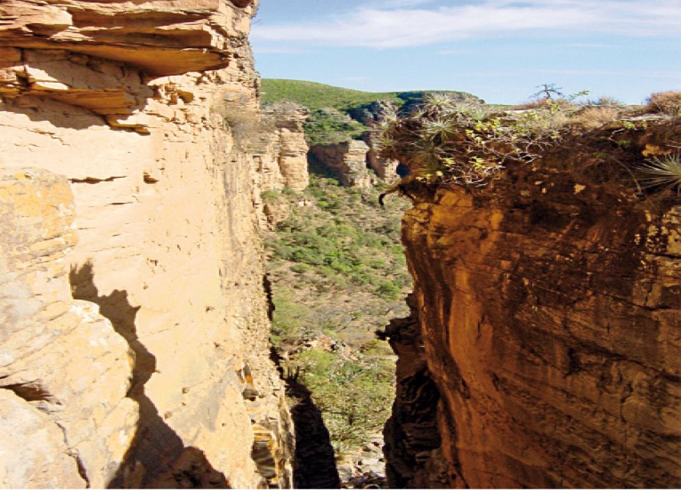 La zona se caracteriza por presentar mesetas de diferente altitud. La fractura o quiebre de los estratos de arenisca grisácea. producida posiblemente por un antiguo movimiento sísmico o desplazamiento de capas, fue la causa natural e inicial que posibilitó la formación de esta caverna.