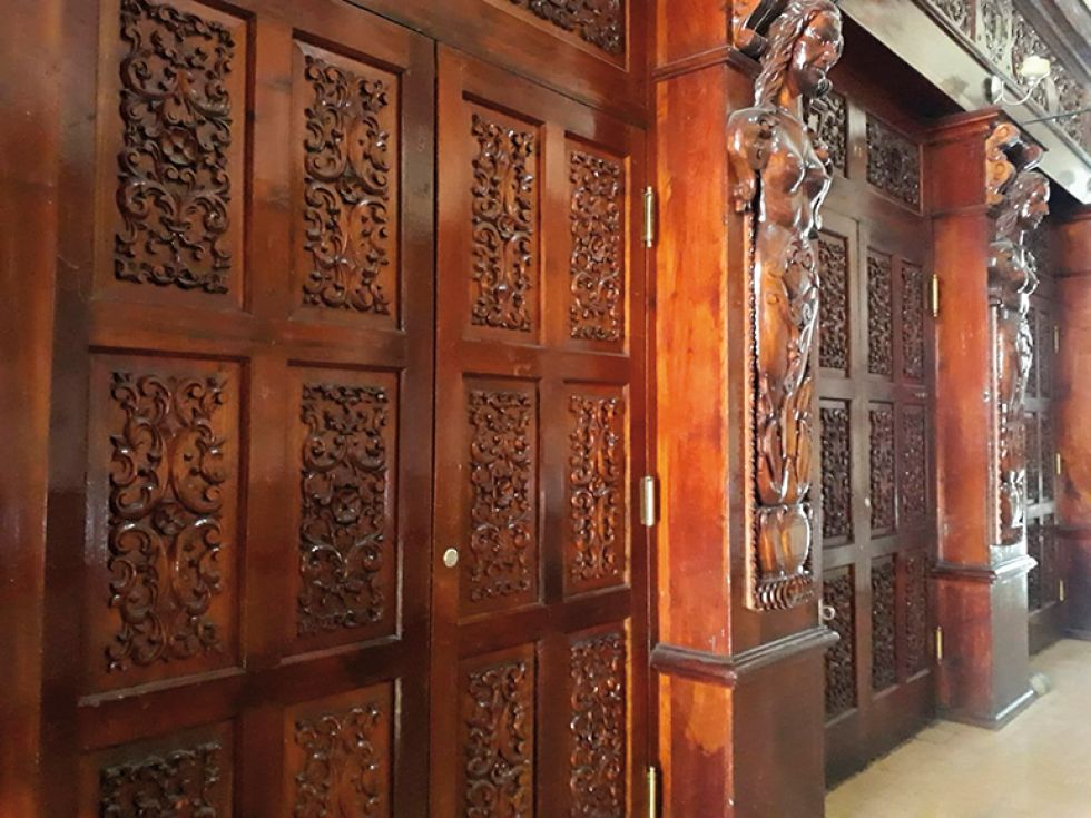 Los techos, puertas, ventanas y balcones fueron construidos con madera mara traída directamente de Santa Cruz. (Madera fina, sin vetas visibles, muy requerida y utilizada para el arte del tallado) y, justamente, los tallados artísticos fueron realizados por el excelente artista Nicolás Ballester, que llegó de la ciudad de Sucre; quien estudió en el colegio Don Bosco; aprendió carpintería y tallado en madera, por las bondades de sus obras de arte, se le contrató y se dedicó íntegramente a su vocación y a su arte. Aún quedan testimonios de su obra. En el interior del imponente edificio de la Universidad Tomás Frías se luce el magnífico tallado de los portones del Paraninfo Universitario y decorado con cariátides expresivas en los fustes de las pilastras; aparte se ve el majestuoso “enfarolado” (americanismo que significa “habitación de una casa que tiene la cubierta de cristal o de plástico y generalmente un gran ventanal”) que es motivo de admiración y atracción. También son trabajos suyos los muebles de la testera, atriles, sillones y mesas estilo Rococó Luis XV para el Rectorado; se menciona las ornamentaciones de los balconcillos de pasillos, cielos rasos con canes bellamente patinados.