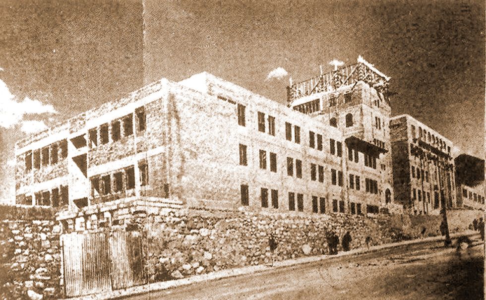 Para la ejecución de la obra, la administración del Dr. Saavedra contrató servicios de una Empresa Sudamericana de origen italiano, en calidad de director de la obra fue contratado Alberto Inch I., ingeniero titulado de la Primera Promoción de la Facultad de Ingeniería civil de la Universidad Tomás Frías. Fue un elogio que una empresa extranjera contrate a un egresado y titulado de una de sus facultades. En ese entonces la Universidad contaba con una fábrica de ladrillos, la Empresa Sudamericana fabricó 4.600 unidades por día. Para la cocción, tenía dos hornos cerámicos, utilizaban como combustible th’ola traída en tren desde Yura, la arcilla se trajo de los lechos de lagunas y ríos de Karachipampa, la arena y cascajo de Las Lecherías.