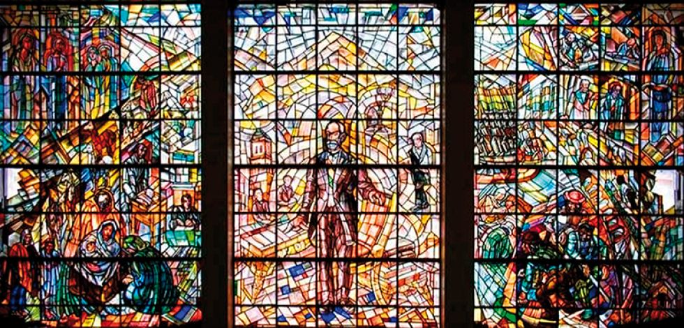 El magnífico vitral del hall, con temática de la Historia de Potosí y la figura principal del ex presidente Tomás Frías, fueron realizados por el artista italiano Gerwer en la ciudad de La Paz. Los arcos de las puertas se hicieron en piedra granito color gris extraídas de las canteras aledañas a la ciudad; labrada por canteros potosinos. El arco de piedra color rosa de la entrada principal, los balcones y torre, fueron traídas ya talladas de la zona de Azari, en Chuquisaca. La Empresa Italiana Sudamericana, con el trabajo de 200 obreros, llegó a avanzar el 75 por ciento de la obra; posteriormente la Universidad decidió continuar con la faena bajo administración directa y se pidió al Ingeniero Inch asuma la responsabilidad de concluir la obra con el apoyo de 100 obreros. La magnífica obra fue concluida con mucho éxito.