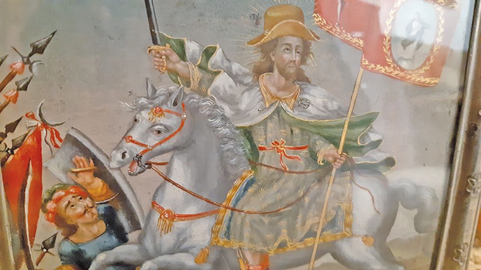 El apóstol Santiago es el centro de la historia de un estandarte que, según Arzáns, es el que se llegó a utilizarse en las procesiones y fiestas que se realizaban en su honor en el Potosí colonial.
