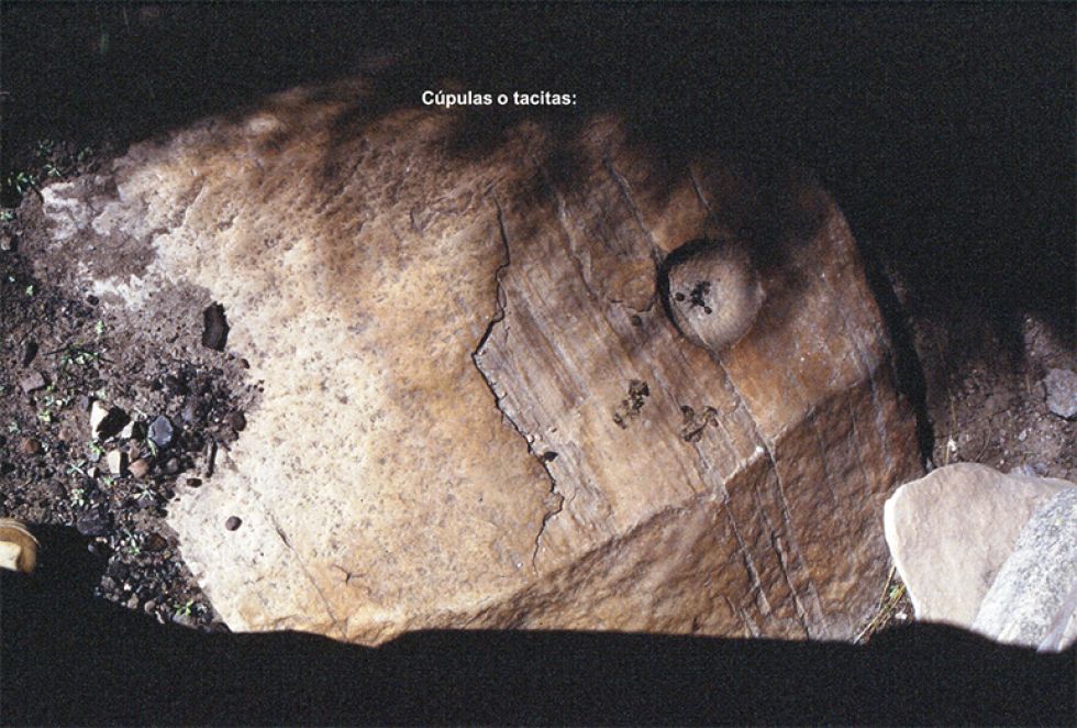 Cúpulas o tacitas: Instrumentos o artefacto agudo y romo de mayor dureza que el soporte, de modo que permitan percutir y raspar. El resultado son depresiones generalmente esferoidales, de diferentes diámetros y profundidad.