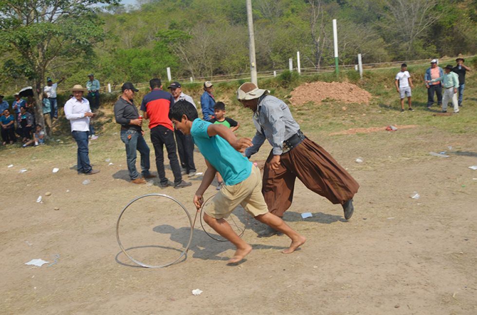 Además, se organizó juegos tradicionales como el palo encebado, la sortija, carrera de aros, competencia de zancos, carrera de tinajas de mujeres guaraníes, la taba, entre otros •