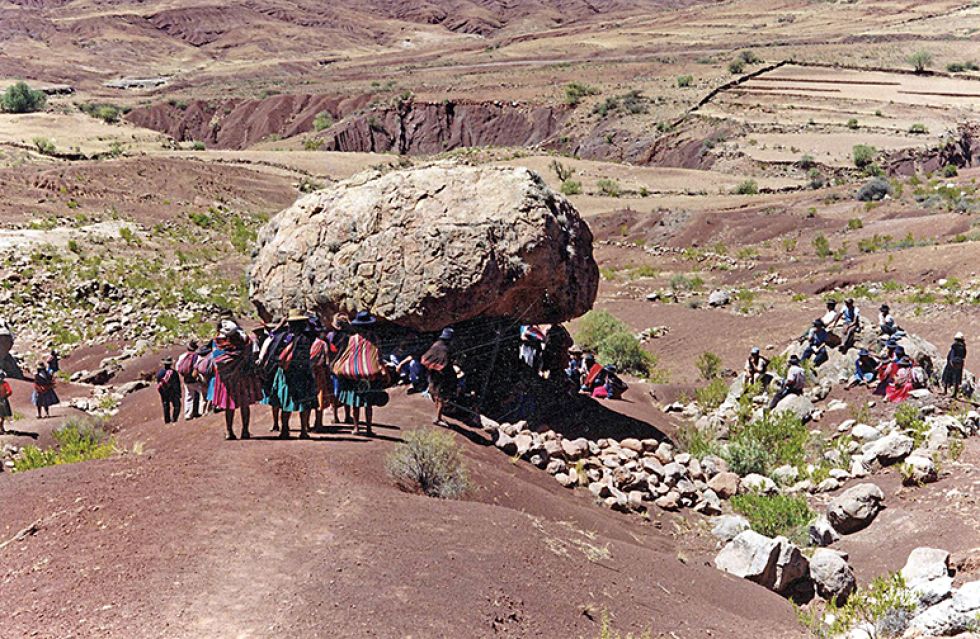 En la falda sud este, donde se encuentra las rocas que fueron objeto o soporte para realizar los grabados rupestres, cubre algo más de 10.000 metros cuadrados de superficie. Desde el punto de vista arqueológico, el sitio fue objeto de ocupaciones sucesivas en el pasado prehispánico. Las rocas con petroglifos corresponden a un periodo previo a la instalación de los sistemas de andenería existentes en el mismo espacio. Estos sistemas de producción agrícola, las terrazas de cultivo, son evidentemente prehispánicas (no están diseñadas para el trabajo de arado con bueyes que son las que provienen de la colonia); estas técnicas prehispánicas las hemos observado en otros sitios: corresponde a formaciones sociales complejas; por lo tanto, son más tardías. De hecho, responden a un sistema de trabajo organizado, posiblemente colectivo; varias de ellas suelen tener un origen Inca.