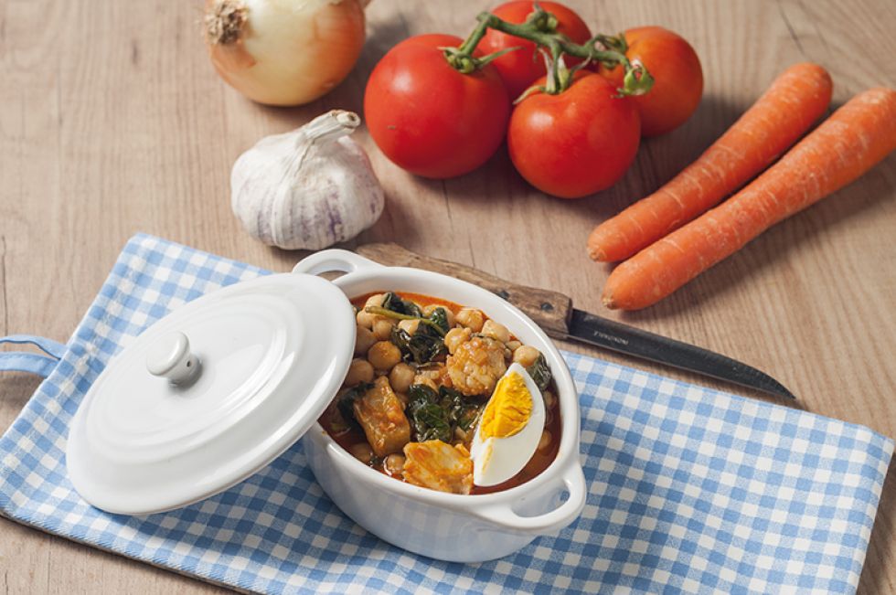 Entre las elaboraciones que tienen como base el bacalao, la más extendida en España es el potaje de garbanzos, también conocido como potaje de vigilia, que se sirve acompañado con las espinacas que en estas fechas crecen en las huertas españolas.