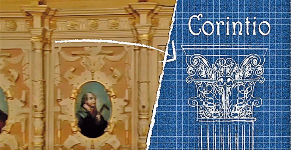 Entonces Hidalgo continuaría con la serie de columnillas y capiteles compuestos por follaje corintio, volutas jónicas y un fuste alargado con bulbos que parecen cebollas y haces de hojas de acanto.
