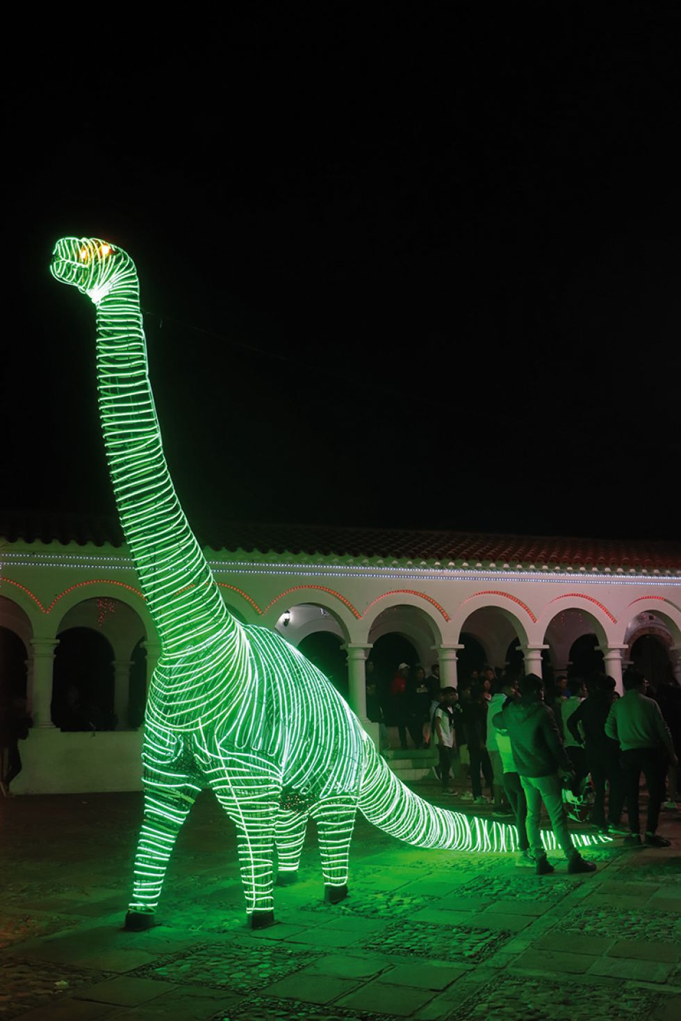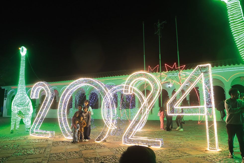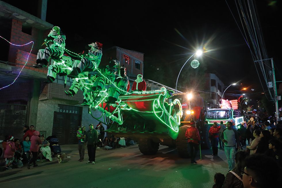 La ciudad de Sucre ha estado inmersa en los preparativos navideños durante varias semanas, con Chuntunquis danzando en la Plaza 25 de Mayo y un desfile impresionante de carros alegóricos en el Distrito 4. En estas últimas semanas, pasear por sus calles se asemeja a sumergirse en un árbol de Navidad, gracias a la iluminación de sus principales plazas con 23,000 metros de luces LED navideñas dispuestas por el Municipio de Sucre. La tecnología y medio centenar de estructuras metálicas, que incluyen dinosaurios, árboles, camellos con Reyes Magos e incluso un nacimiento rodeado de regalos, han contribuido a crear este efecto festivo.