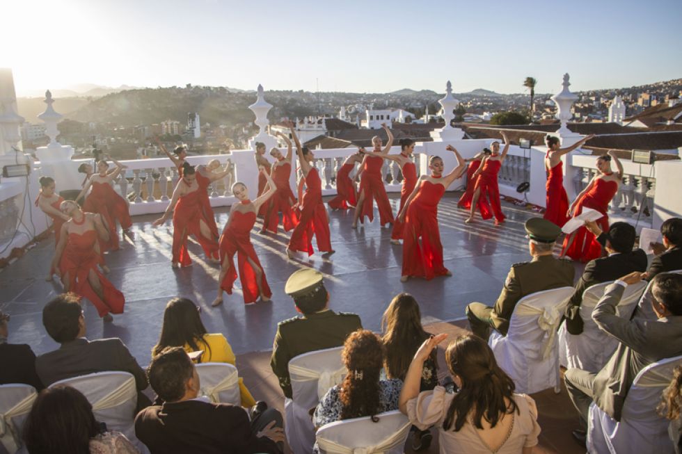 La inauguración del evento, impulsada por la Gobernación de Chuquisaca, se realizó en la mansarda del edificio de estilo renacentista construido para ser el asiento del Gobierno boliviano. Allí, esbeltas figuras danzaban sobre los tejados, se trataba de las bailarinas del Estudio de Danza Amparo Silva que intercalaba las presentaciones con el violinista chuquisaqueño, Gustavo Orihuela.